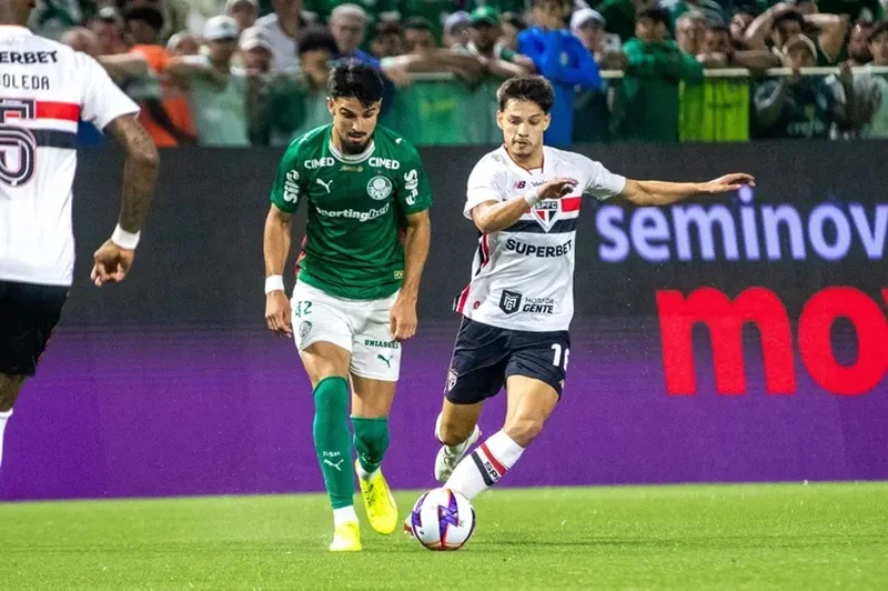 A intensidade marcou o início do clássico e fez o Palmeiras se impor diante do São Paulo Futebol Clube. Com as linhas adiantadas, a equipe comandada por Abel Ferreira pressionou a saída de bola rival e, sempre que recuperava a posse, acelerou a transição em direção ao gol defendido por Rafael.