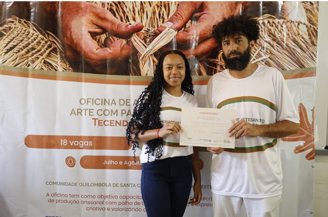 Além do aprendizado das técnicas de produção artesanal com palha de buriti, os participantes receberam certificado de participação e uma bolsa de R$ 500,00, incentivo importante para apoiar a permanência dos alunos na atividade e estimular o empreendedorismo cultural.