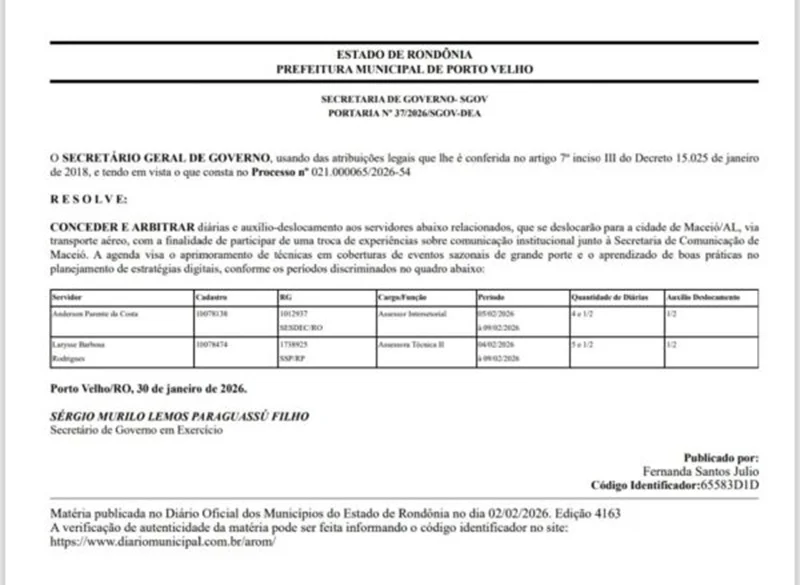 Pelo menos é isso que consta na publicação de 30 de janeiro de 2026 do Diário dos Municípios de Rondônia. Um gesto de generosidade administrativa digno de registro histórico: passagem, diárias e estadia custeadas em plena alta temporada, no destino mais concorrido do verão brasileiro. Um privilégio que, curiosamente, nenhuma gestão anterior havia concedido. Coube ao prefeito Léo Moraes inaugurar essa modalidade de “capacitação tropical”.