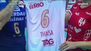 Thaysa, da seleção brasileira de vôlei feminino, ficou emocionada na quadra do Tijuca, onde começou a jogar voleibol. O clube entregou a ela uma camisa personalizada, antes do jogo pela Superliga. Na quadra, o Minas venceu de 3×0, com grande partida da meio-de-rede do Minas e da seleção brasileira, sobre o Tijuca.