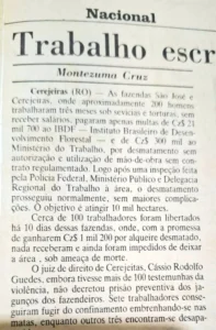 A prática do trabalho em condições análogas à escravidão em Colorado do Oeste, Cerejeiras, Chupinguaia e Vilhena estava longe de ser um fato novo, constatei em 1981 ao conversar com o padre salesiano Ângelo Spadari, na Casa Paroquial. Ele me contava da rotineira ida de trabalhadores para as fazendas da região, alimentada diariamente por ‘gatos’ originários de Mato Grosso ou de estados do sul.
