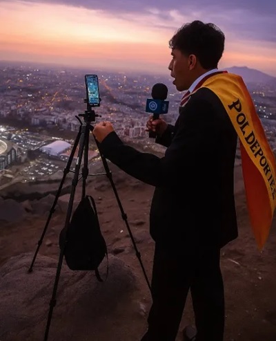 Do outro, quase escondido do mundo, um menino de 15 anos, sozinho no alto de uma montanha, segurando um celular como se fosse um troféu. Não para aparecer. Para narrar.