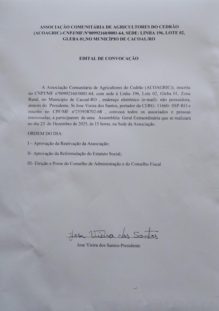 10 de dezembro de 2025 Edital de Convocação – ACOAGRIC FacebookTwitterPinterestWhatsApp Destaques COLUNA BOCA MALDITA – ENTRE TAPAS E BEIJOS POESIA: A VERDADEIRA PÁSCOA A ALMA GÊMEA DE DAVI ALCOLUMBRE Marcos Rocha não vai renunciar ao governo de Rondônia Professora universitária se destaca em Rondônia com ações de saúde que transformam vidas Cássio Gois destaca legado de Adailton Furia e afirma: “A missão continua” em dia histórico em Cacoal Ovo de páscoa com menos de 25% de cacau não é chocolate de verdade; entenda Governo exonera 16 ministros de Estado que estudam candidatura Por que a nova insulina disponível no SUS é considerada um avanço Coluna PONTO CRÍTICO – Equipe de Léo Moraes parece estar mais coligada com o “bolso” do que com o povo