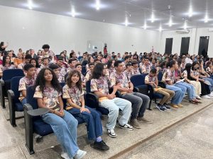 Aconteceu na noite desta segunda-feira (8), em Cacoal, a formatura de mais uma turma do projeto Música na Comunidade, iniciativa que há 18 anos transforma a realidade de crianças e adolescentes por meio da música. Esta é a 17ª turma formada, já que o projeto foi temporariamente interrompido durante o período da pandemia. Ao todo, 49 alunos concluíram as atividades neste ano.