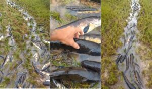 Segundo informações preliminares, o episódio ocorreu em uma propriedade rural próxima à BR-429, no sentido de São Francisco do Guaporé. No vídeo, é possível ver os peixes ocupando praticamente todo o espaço da passagem de água, formando uma espécie de “rio vivo” que impressionou moradores e curiosos.