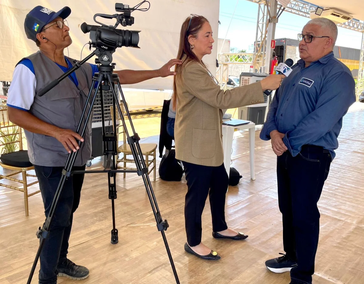 Equipe da TV Alero durante entrevista (Foto: Thyago Lorentz I Secom ALE/RO)
