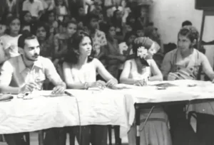 Sem condições para atender todas as necessidades a turma se valeu da improvisação, como a tela onde seriam projetadas as imagens. A solução foi da jornalista Jussara Gotlieb que trouxe de casa um lençol, colocado na parede. Mas havia alguns entraves.