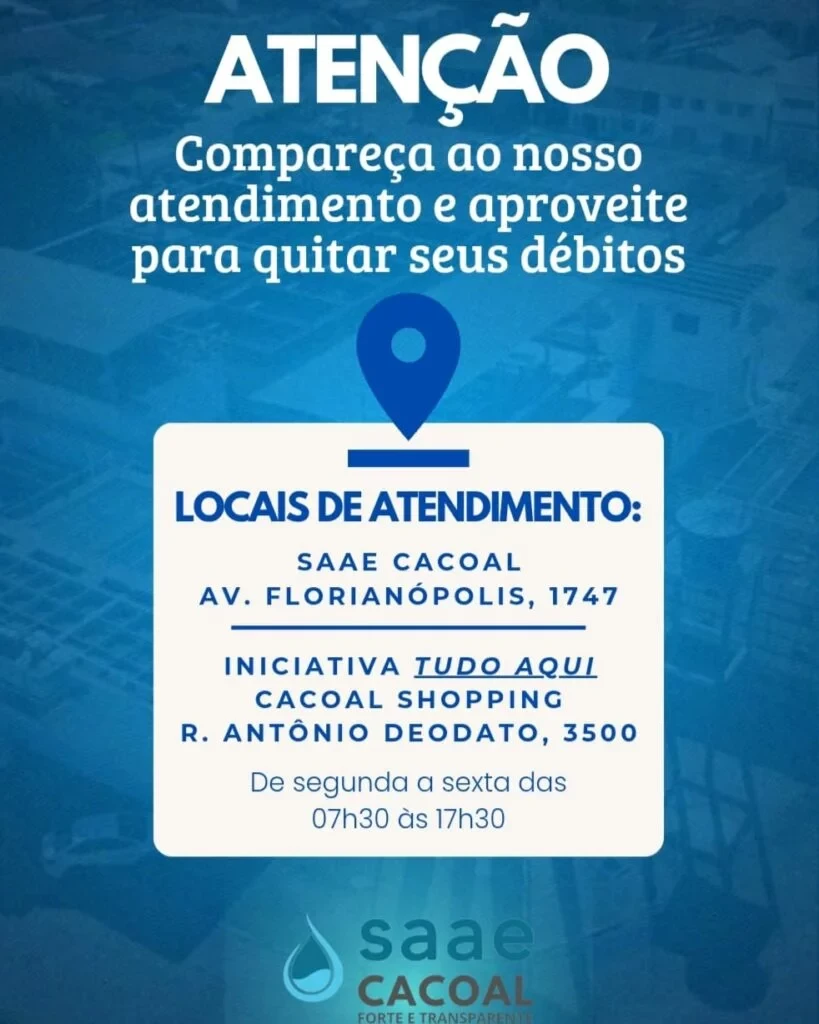 22 de outubro de 2025 Prefeitura de Cacoal lança programa de Recuperação Fiscal para o SAAE FacebookTwitterPinterestWhatsApp Ambos atendem de segunda a sexta-feira, das 7h30 às 17h30. LEI 5.662 – 2025 – Recuperação de credito saae 2025-1 Destaques POESIA: O DEVER E O PRIVILÉGIO DA PALAVRA COLUNA BOCA MALDITA – ENTRE TAPAS E BEIJOS POESIA: A VERDADEIRA PÁSCOA A ALMA GÊMEA DE DAVI ALCOLUMBRE Marcos Rocha não vai renunciar ao governo de Rondônia Professora universitária se destaca em Rondônia com ações de saúde que transformam vidas Cássio Gois destaca legado de Adailton Furia e afirma: “A missão continua” em dia histórico em Cacoal Ovo de páscoa com menos de 25% de cacau não é chocolate de verdade; entenda Governo exonera 16 ministros de Estado que estudam candidatura Por que a nova insulina disponível no SUS é considerada um avanço