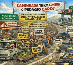 Porto Velho a Candeias do Jamari será o palco de uma mobilização popular que promete ecoar forte no asfalto da BR-364. Neste sábado (24/01/2026), moradores, lideranças comunitárias e representantes políticos se reúnem para uma caminhada de 18 quilômetros contra o que classificam como cobranças abusivas de pedágio na principal rodovia federal do estado.