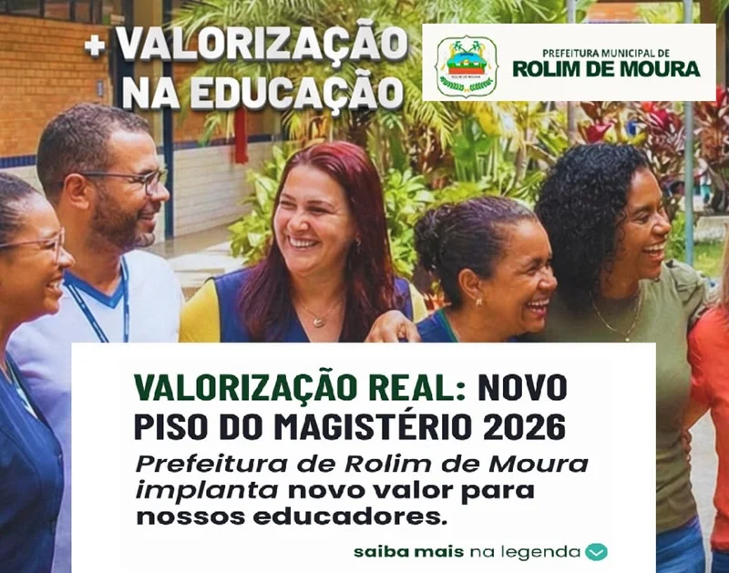 A Prefeitura de Rolim de Moura publicou o Decreto nº 6.902/2026, que dispõe sobre a implantação do Piso Salarial dos Profissionais do Magistério Público Municipal, em conformidade com a Lei Federal nº 11.738/2008, que institui o Piso Salarial Profissional Nacional do Magistério da Educação Básica.
