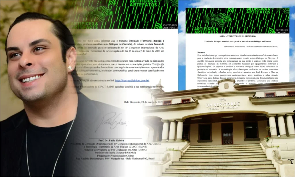O pesquisador e escritor Fernando Von Noble (Jair Fernando Alves da Silva), mestrando em Filosofia pela Universidade Federal de Rondônia (UNIR), teve seu trabalho aprovado para apresentação no 11º Congresso Internacional de Arte, Ciência e Tecnologia e Seminário de Artes Digitais (CIACT-SAD 2026), que será realizado entre os dias 25 e 27 de maio de 2026, em Belo Horizonte (MG).