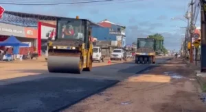 O incidente aconteceu em um ponto de obras do projeto “Tchau Poeira”, responsável pelo recapeamento e asfaltamento de vias.